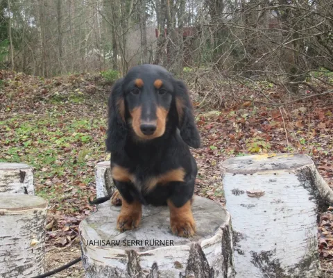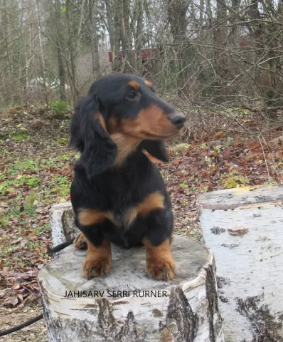 The puppy has developed bones and muscles because it has been able to run a lot outside and play with other dachshunds from the kennel Jahisarv. If necessary, you can bring an export pedigree, in addition to an EU vetpass with the necessary vaccines.