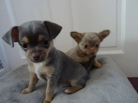 We have 6 absolutely stunning tiny chihuahua puppies looking for loving homes. 4 girls 2 boys various colours available. some long coat some smooth. We have mum kc registered (long haired) and dad (smooth coat )to view with pups and we welcome visitors but be warned you will fall in love. They will Leave microchipped, flea, wormed and will have their first vaccination and vet health check. Deposit required to secure pup of choice.