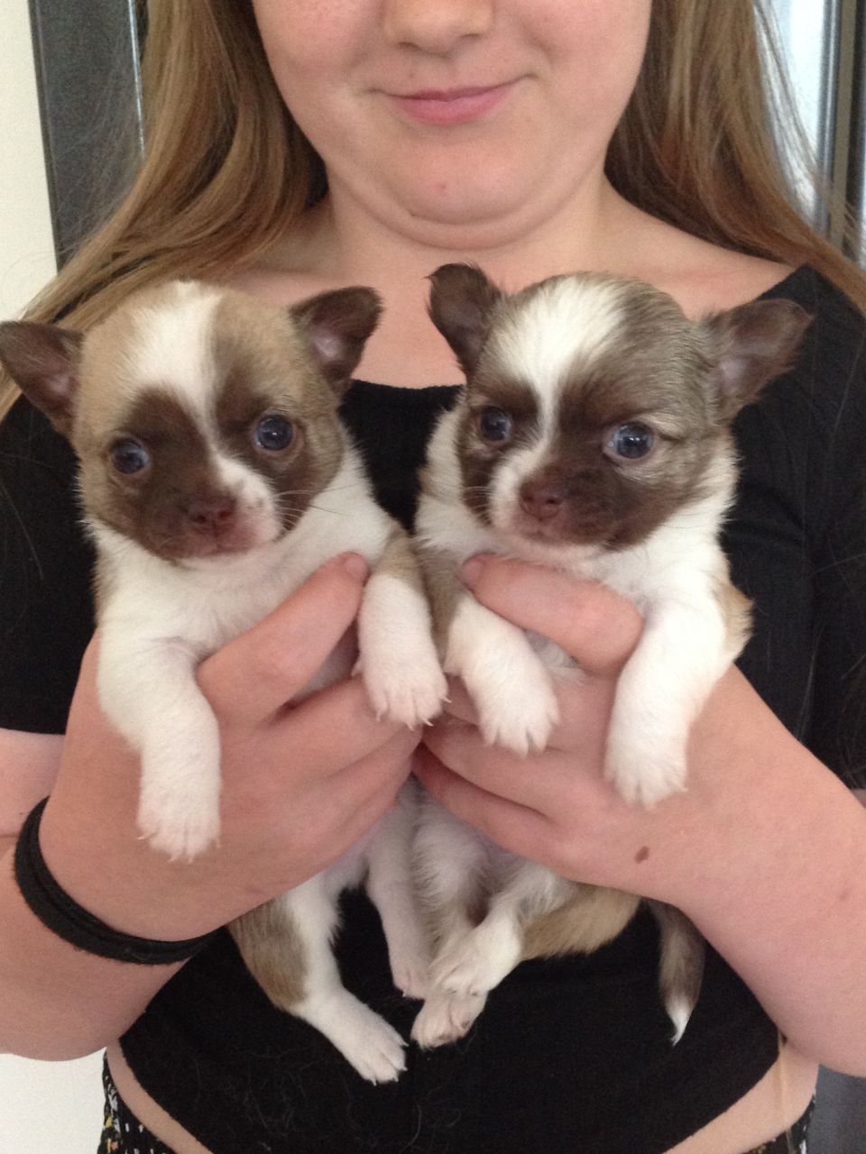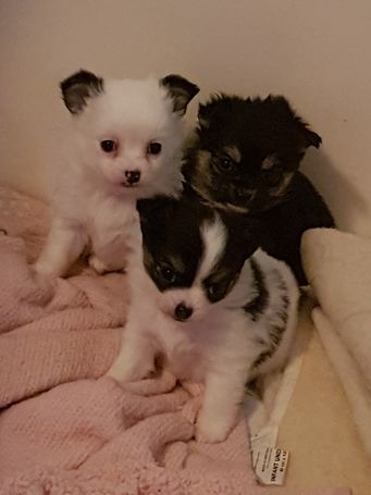 We have 6 absolutely stunning tiny chihuahua puppies looking for loving homes. 4 girls 2 boys various colours available. some long coat some smooth. We have mum kc registered (long haired) and dad (smooth coat )to view with pups and we welcome visitors but be warned you will fall in love. They will Leave microchipped, flea, wormed and will have their first vaccination and vet health check. Deposit required to secure pup of choice.