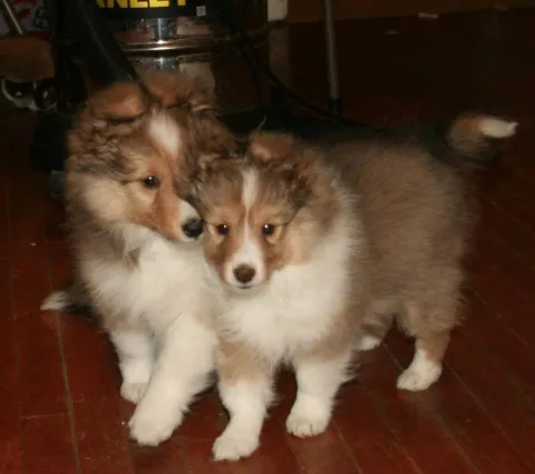 Mul on armas pesakond Shetlandi lambakoera kutsikaid, poisse ja tüdrukuid.