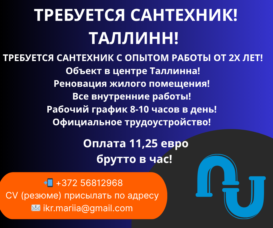 РЕБУЕТСЯ САНТЕХНИК С ОПЫТОМ РАБОТЫ ОТ 2Х ЛЕТ!
