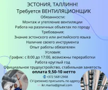 RUS: Эстония в город Таллинн требуется вентилянционщик! Tööpakkumised Eestis