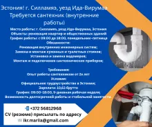 RUS: Эстония в город Силламяэ требуется сантехник! Tööpakkumised Eestis