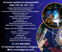 RUS: Эстония требуется сварщикMIG -MAG 135-136, TIG - 141! Tööpakkumised Eestis